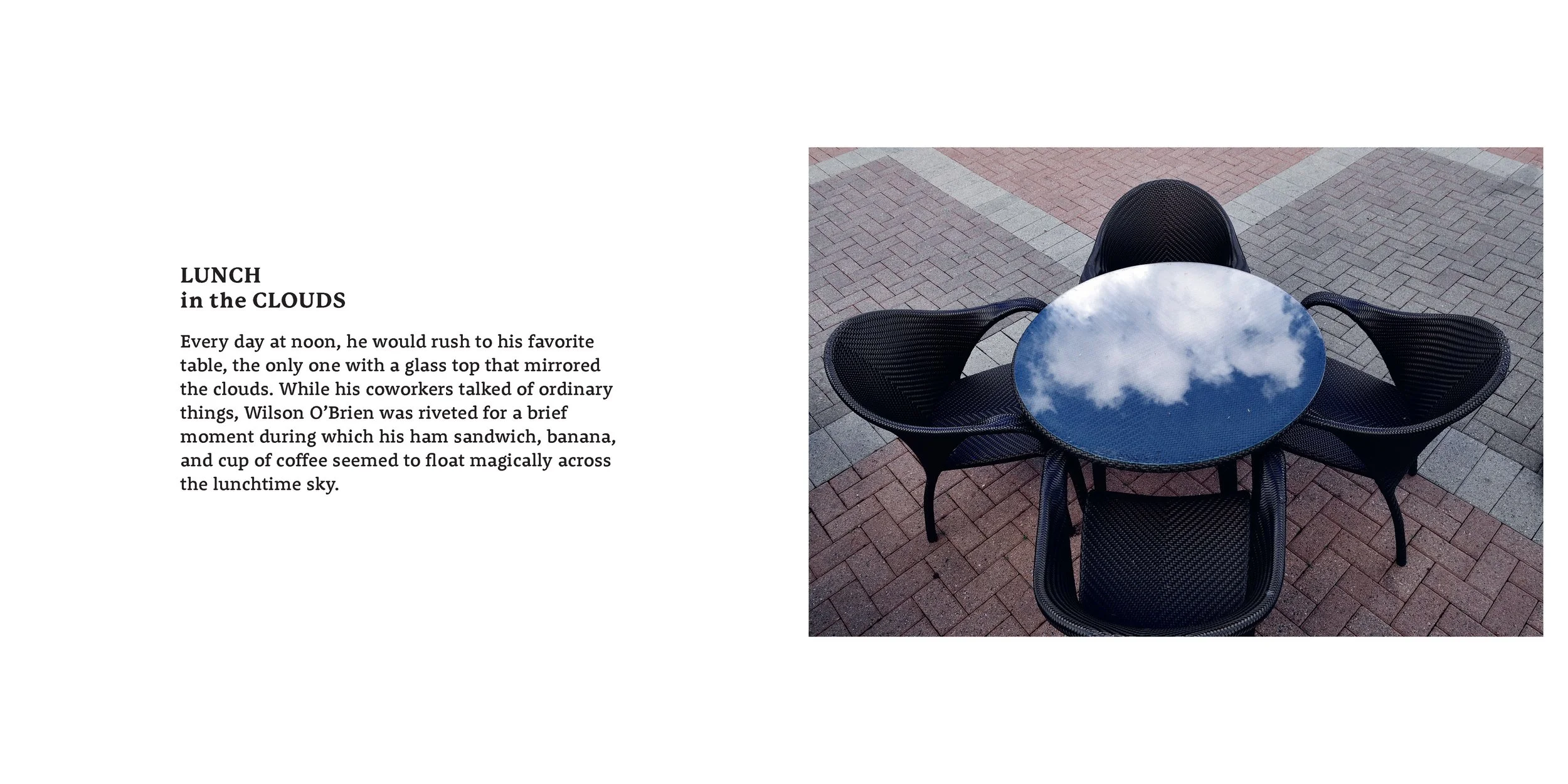 Years ago, I worked at the legendary Paramount Studios. During my lunch breaks, I would explore the movie streets where many famous films were shot. When I decided to finally grab a bite to eat, I had a favorite table. I liked the idea of the sky and my sandwich together on that glass top table. Did it make the sandwich better? Sadly no, but the few minutes sitting there were a perfect little moment in the day.