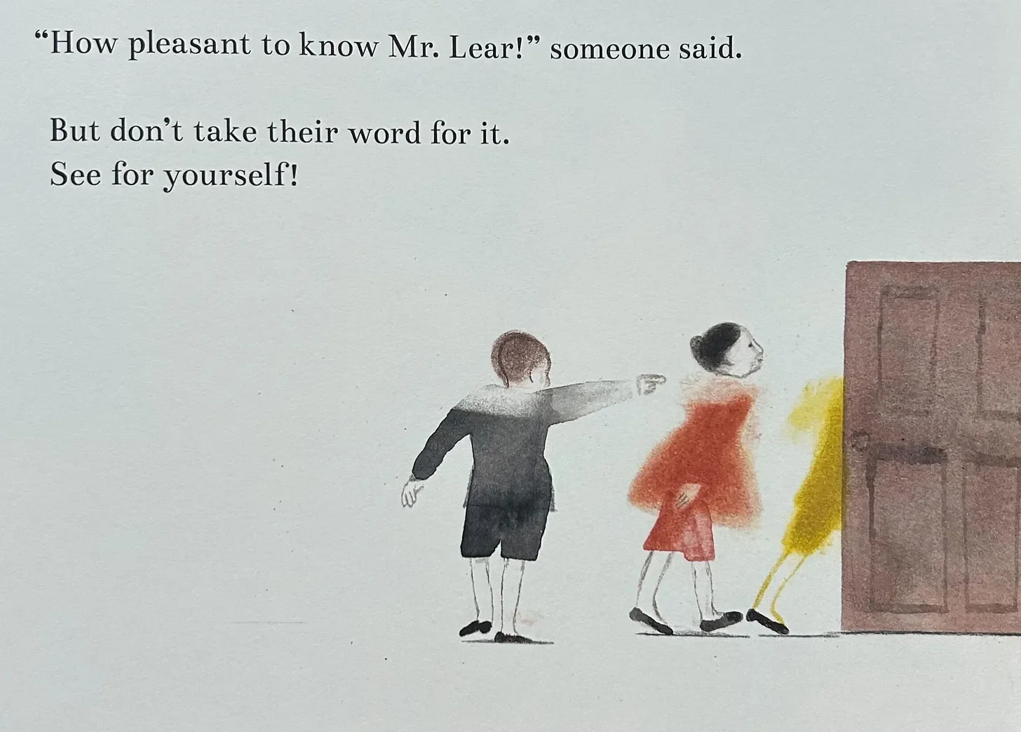 Hill's deep knowledge of and love for Lear transforms what could have been a static portrait into something vibrant and alive. Rather than presenting a distant historical figure, Hill invites us to walk alongside a man whose struggles with depression, social anxiety, and the search for belonging feel startlingly contemporary. In a recent interview with Betsy Bird for the School Library Journal, Hill shared, "times have changed, but the fundamental challenges of growing up haven't. Lear met kids where they were, made them laugh, and showed them how the imagination can be an antidote against boredom, sadness, and injustice."