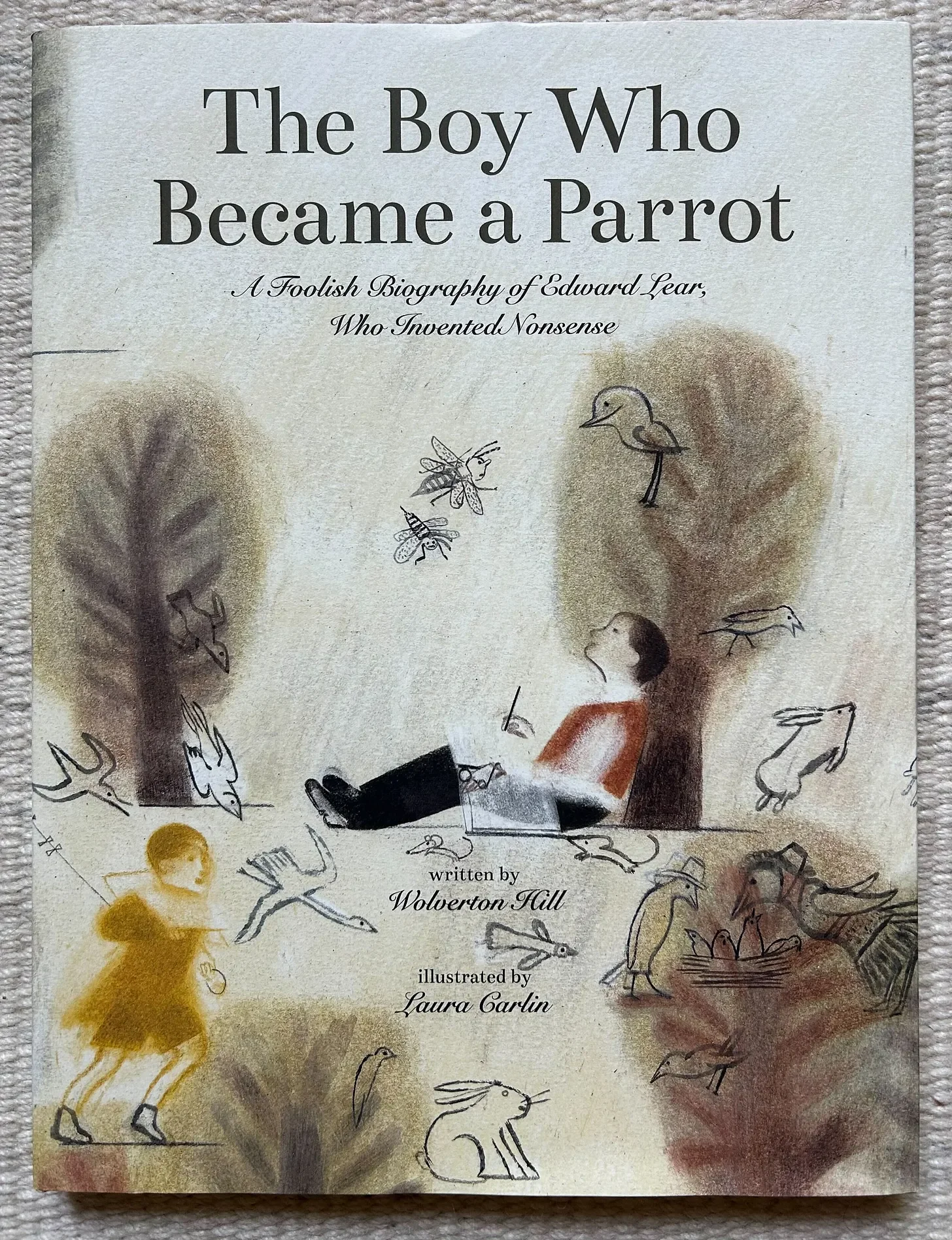 A preview of Enchanted Lion's forthcoming release, "The Boy Who Became a Parrot: A Foolish Biography of Edward Lear, Who Invented Nonsense" by Wolverton Hill and Laura Carlin