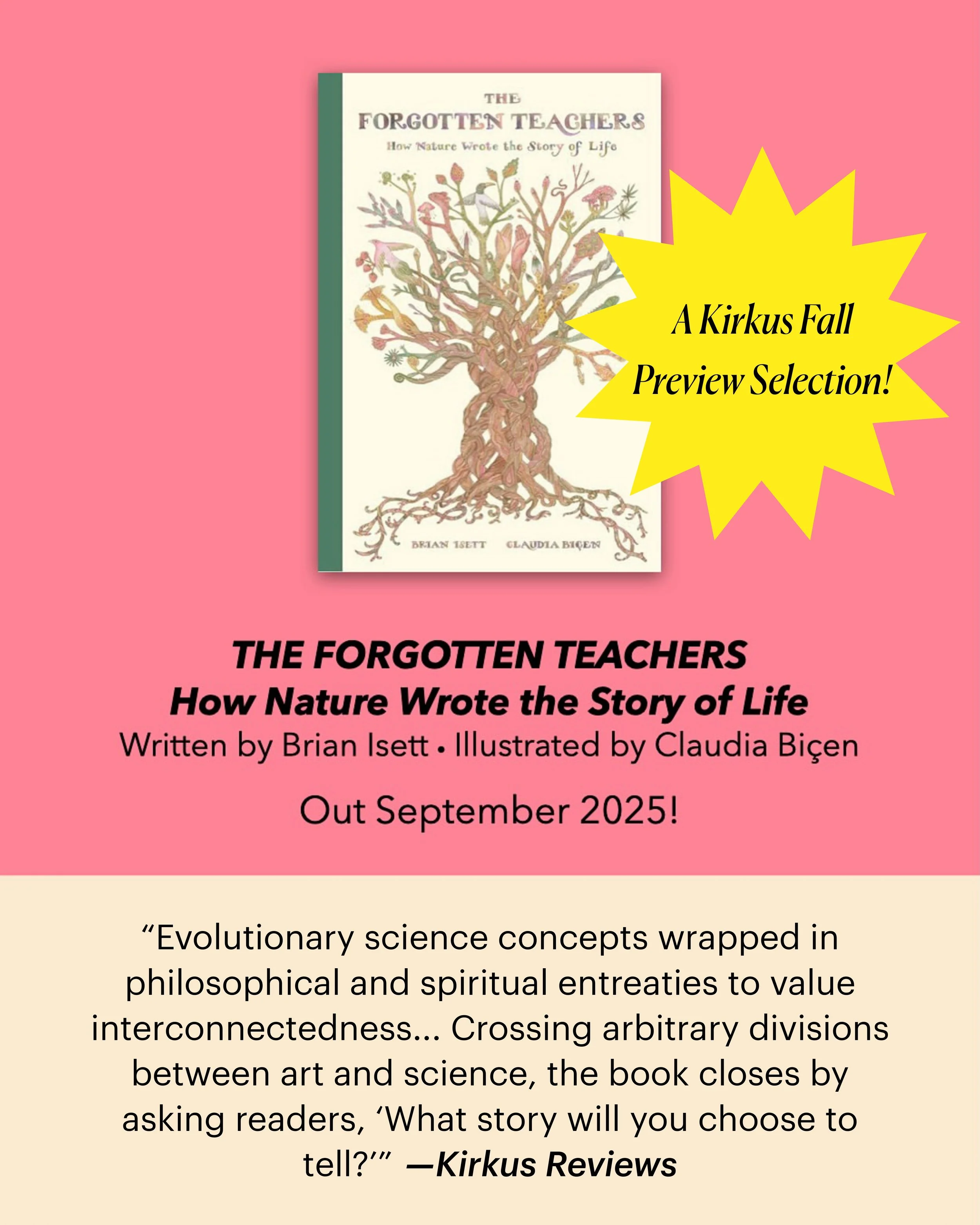 In these dog days of summer, it's with great anticipation that we look forward to the cool, crisp days of autumn. But even more, we're looking forward to a NEW SEASON of beautiful, interesting books! We're shining a spotlight on a few highly anticipated fall titles: a new picture book from Maria Popova (The Marginalian) and acclaimed illustrator Sarah Jacoby; a brilliant Unruly title that interweaves science and spirituality to redefine our connection to all of nature; and our latest translations from two greats of international children's literature—Gianni Rodari from Italy and Ryoji Arai from Japan.